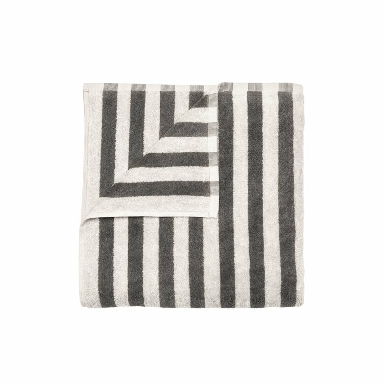 De breda ränderna ger ett grafiskt och tidlöst uttryck som passar perfekt i nordiska badrum. Handduken är tillverkad i absorberande bomull som känns behaglig mot huden och gör den idealisk för både badrum och gästtoalett.