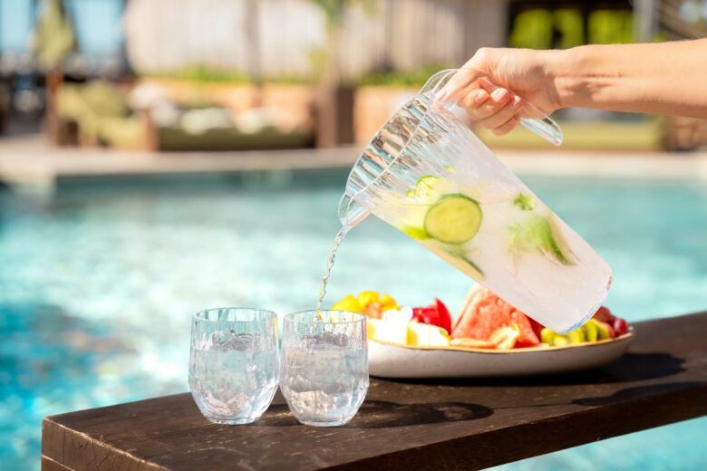 Det robusta materialet är okrossbart och håller dryckerna svala under lång tid. Locket har två olika hällöppningar, så isbitar och citronskivor håller sig pålitligt inuti. Vrider du locket 90 grader är kannan helt stängd och innehållet skyddat från insekter och damm. Fri från BPA och melamin.