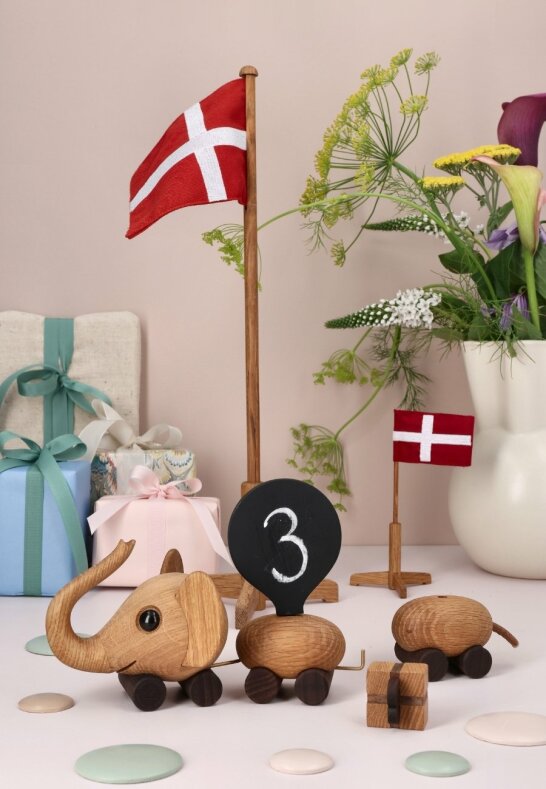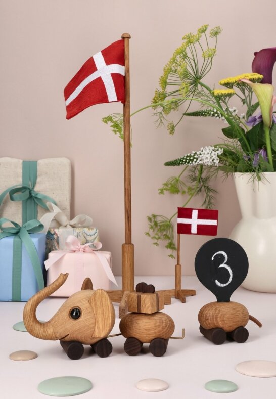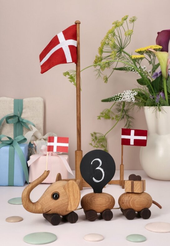 Elefant Födelsedagståg Trädekoration 26 cm Ek