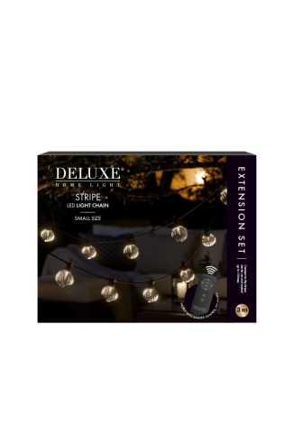 Extra LED ljusslinga 3 meter med 10 randiga lampor som passar till startsetet DH-STRIPE-S0001 LED Ljusslinga Stripe Starter Set Small 6 m. Ljusslingan kan användas både inomhus och utomhus då den är vattentät (IP44).