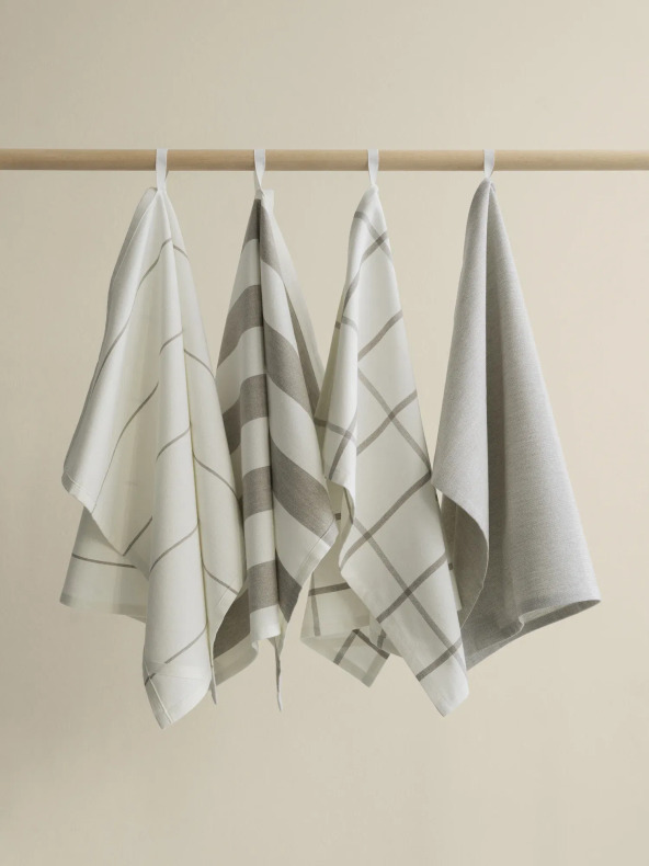 TAULO Tea Towel, Set of 2 pcs 70 x 50 cm White/Mourning Dove